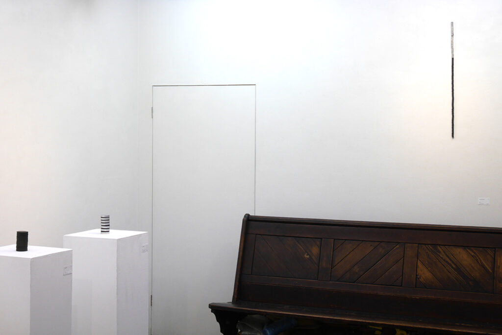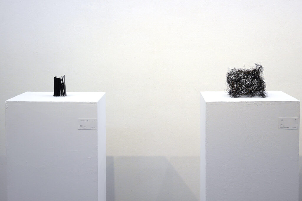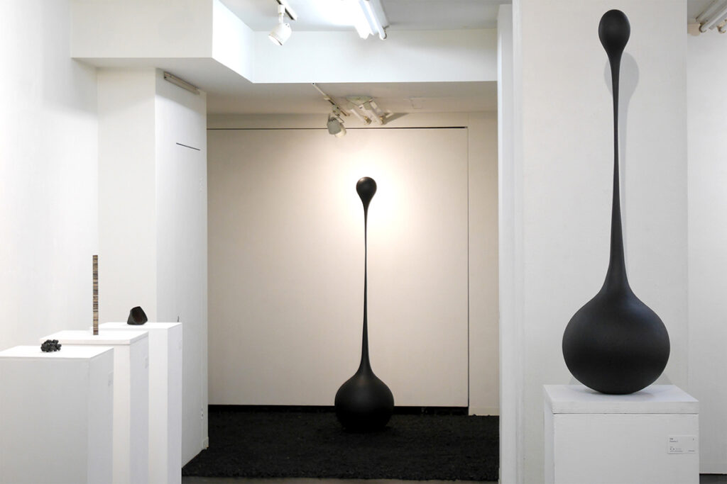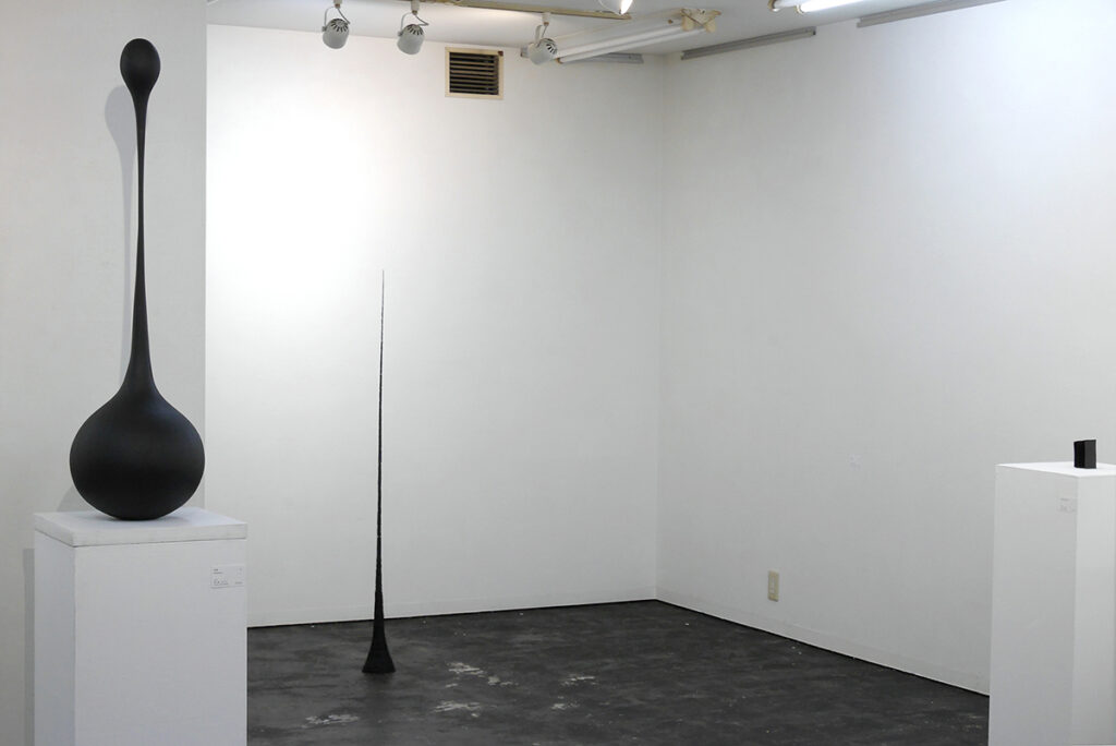 (画像中央) “気配/Presence 2” 2025 陶・墨・モルタル h990 w250 d250mm
