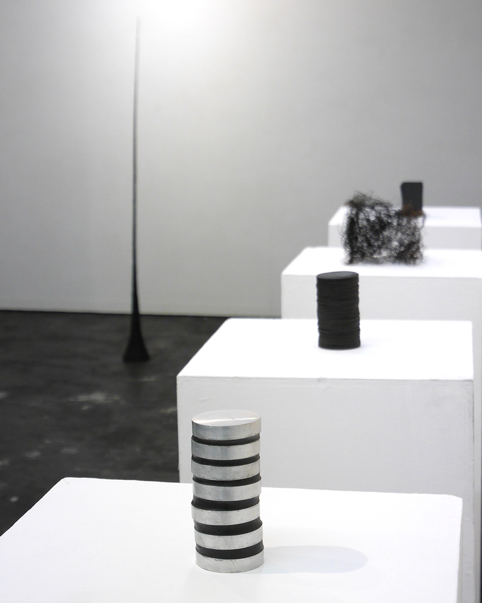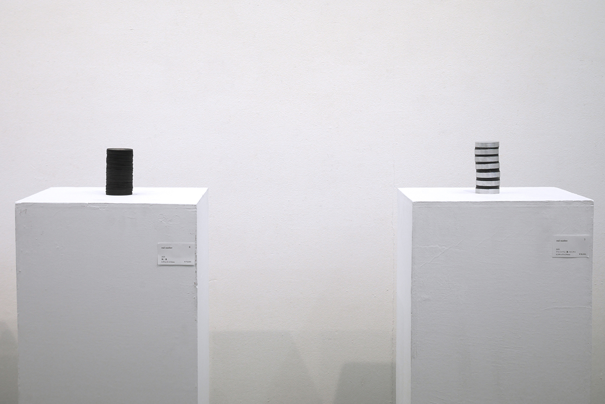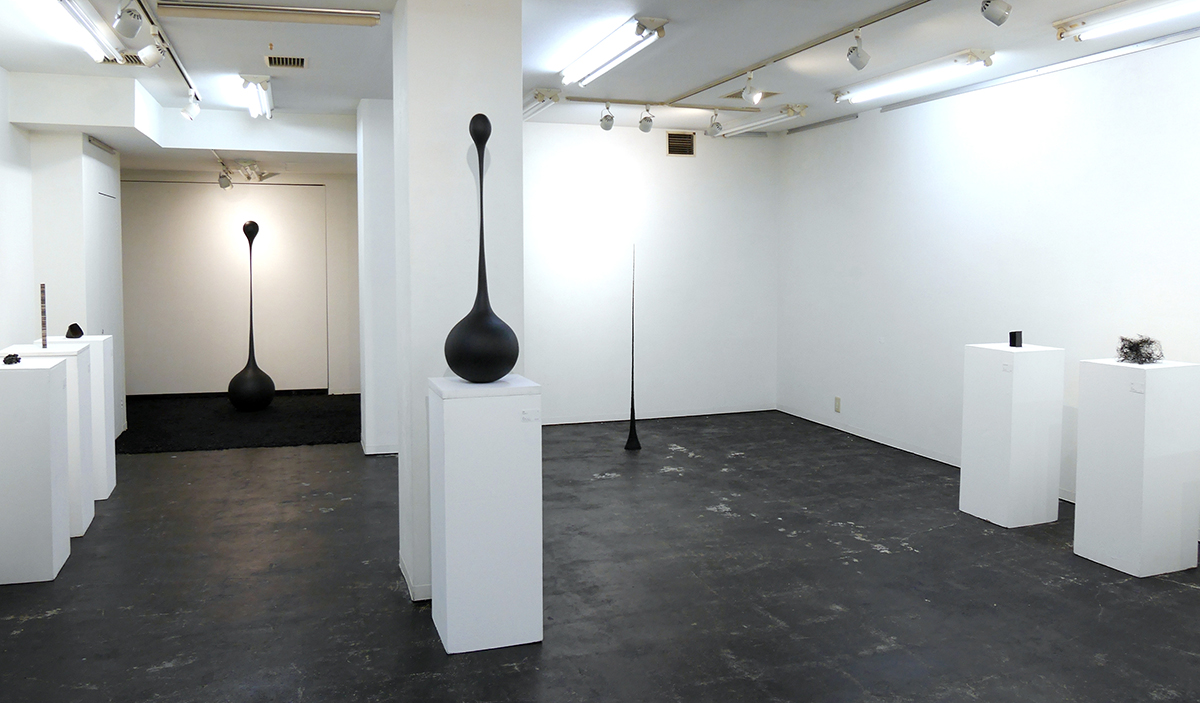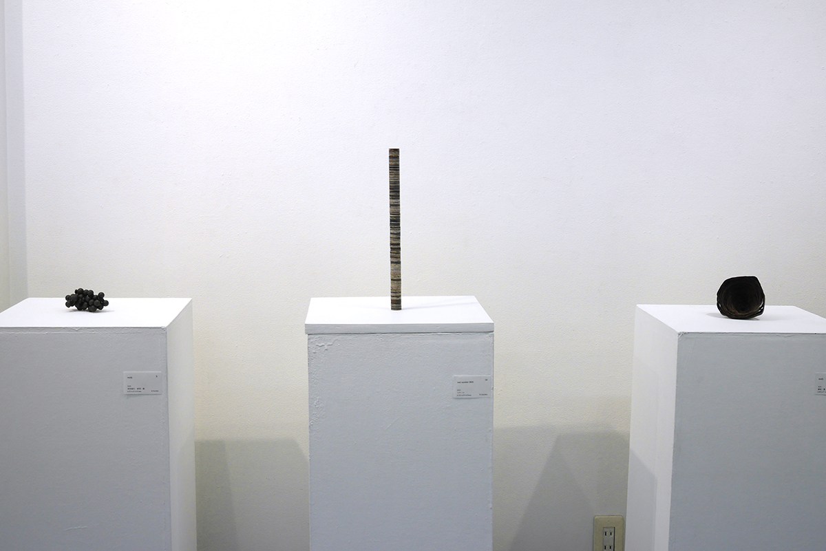(画像中央) “気配/Presence 2” 2025 陶・墨・モルタル h990 w250 d250mm